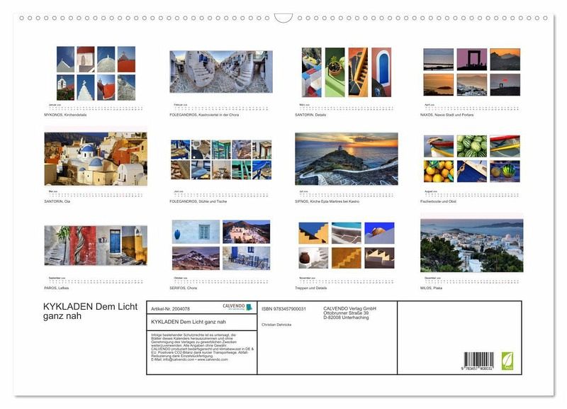 QUALITÄT - Hochwertiger Fotokalender mit 12 wunderschönen Motiven auf lichtbeständigem Bilderdruckpapier, robuste Spiralbindung mit Aufhängebügel.NACHHALTIG - deutliche Abfallreduzierung durch bedarfsgerechte Einzelstückfertigung, umweltfreundliches FSC-zertifiziertes Papier, Produktion in Deutschland, klimabewusste Logistik.PERFEKTES GESCHENK - Kalender für Freunde und Familie, für Kinder und Erwachsene, jung und alt, zu Weihnachten, Geburtstag oder zwischendurch.VIELFALT - Bildkalender in verschiedenen Formaten, z.B. DIN A5, DIN A4, DIN A3 sowie DIN A2. Ob Naturmotiv, Gemälde oder Fotos, ideal für ein persönliches Wohlfühlambiente.Impressionen von den griechischen Inseln von Autor(in): Christian Dehnicke