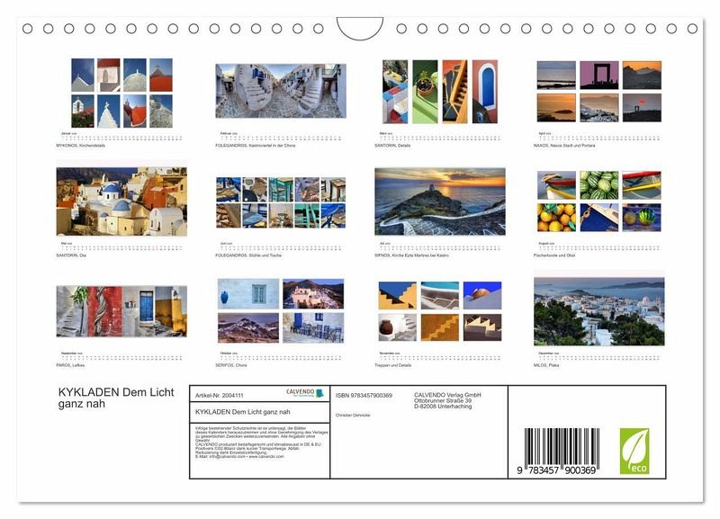 QUALITÄT - Hochwertiger Fotokalender mit 12 wunderschönen Motiven auf lichtbeständigem Bilderdruckpapier, robuste Spiralbindung mit Aufhängebügel.NACHHALTIG - deutliche Abfallreduzierung durch bedarfsgerechte Einzelstückfertigung, umweltfreundliches FSC-zertifiziertes Papier, Produktion in Deutschland, klimabewusste Logistik.PERFEKTES GESCHENK - Kalender für Freunde und Familie, für Kinder und Erwachsene, jung und alt, zu Weihnachten, Geburtstag oder zwischendurch.VIELFALT - Bildkalender in verschiedenen Formaten, z.B. DIN A5, DIN A4, DIN A3 sowie DIN A2. Ob Naturmotiv, Gemälde oder Fotos, ideal für ein persönliches Wohlfühlambiente.Impressionen von den griechischen Inseln von Autor(in): Christian Dehnicke