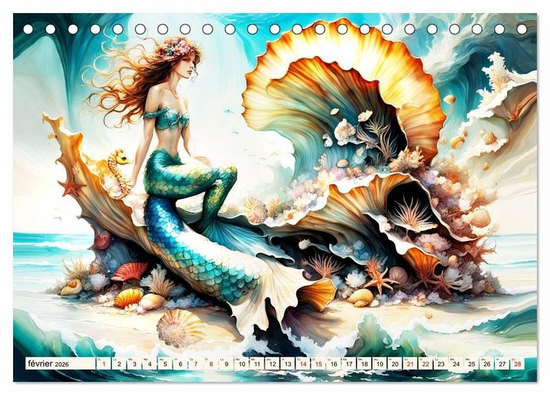 Laissez-vous enchanter par notre calendrier unique, créé à l'aide de l'intelligence artificielle. Chaque image capture la beauté d'une sirène. Vivez une année pleine de fantaisie et de magie marine.Chaque image est un hommage au lien entre la mer et la terre, capturé dans un moment intemporel de calme et de beauté. Un cadeau parfait pour tous les amoureux des sirènes et les voyageurs de rêve.