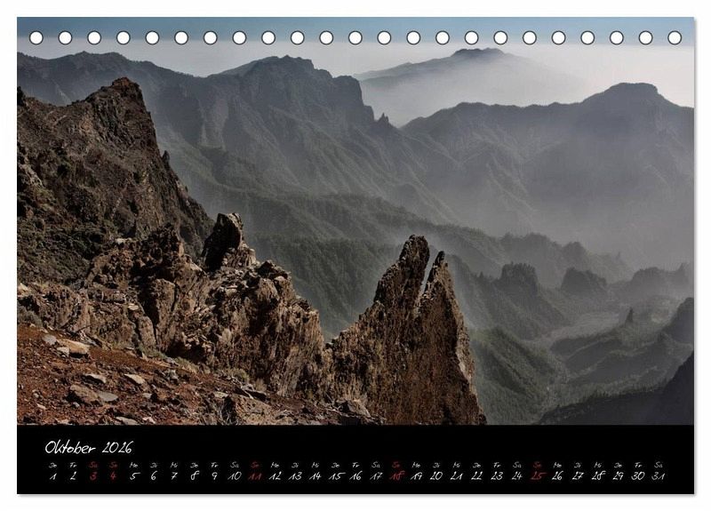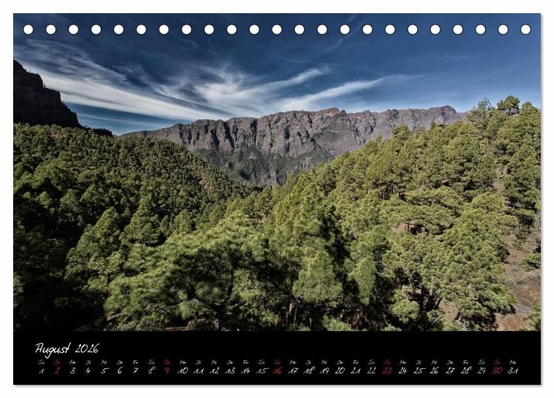 La Palma ist eine der kleineren kanarischen Inseln. Sie ist vom Massentourismus verschont geblieben und zeigt ihre wahre Schönheit dem Besucher, der auch gerne einmal das Auto stehen lässt und die Insel zu Fuß erkundet. Für die Bilder in diesem Kalender wurde bewusst auf kräftige Farben verzichtet, da sich die Bergwelt La Palmas so von ihrer eindrucksvollsten Seite zeigt.