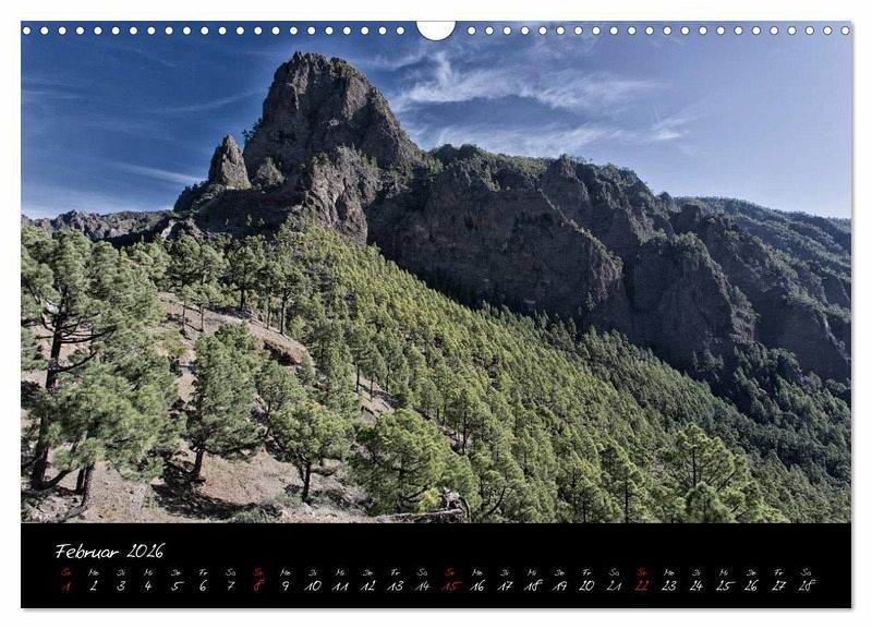 La Palma ist eine der kleineren kanarischen Inseln. Sie ist vom Massentourismus verschont geblieben und zeigt ihre wahre Schönheit dem Besucher, der auch gerne einmal das Auto stehen lässt und die Insel zu Fuß erkundet. Für die Bilder in diesem Kalender wurde bewusst auf kräftige Farben verzichtet, da sich die Bergwelt La Palmas so von ihrer eindrucksvollsten Seite zeigt.