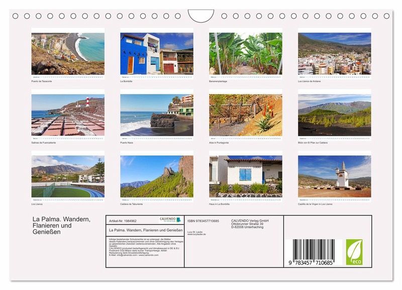 QUALITÄT - Hochwertiger Fotokalender mit 12 wunderschönen Motiven auf lichtbeständigem Bilderdruckpapier, robuste Spiralbindung mit Aufhängebügel.NACHHALTIG - deutliche Abfallreduzierung durch bedarfsgerechte Einzelstückfertigung, umweltfreundliches FSC-zertifiziertes Papier, Produktion in Deutschland, klimabewusste Logistik.PERFEKTES GESCHENK - Kalender für Freunde und Familie, für Kinder und Erwachsene, jung und alt, zu Weihnachten, Geburtstag oder zwischendurch.VIELFALT - Bildkalender in verschiedenen Formaten, z.B. DIN A5, DIN A4, DIN A3 sowie DIN A2. Ob Naturmotiv, Gemälde oder Fotos, ideal für ein persönliches Wohlfühlambiente.Die geologisch jüngste und waldreichste Kanarische Insel von Autor(in): Lucy M. Laube