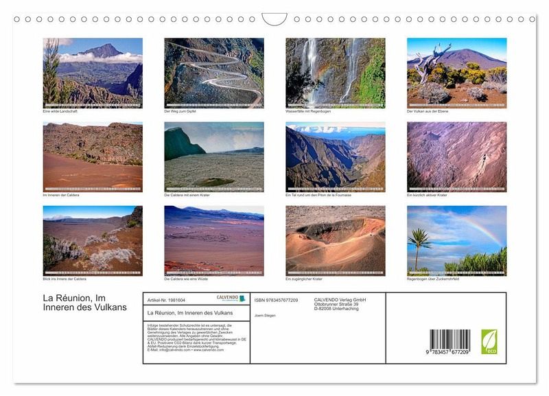 QUALITÄT - Hochwertiger Fotokalender mit 12 wunderschönen Motiven auf lichtbeständigem Bilderdruckpapier, robuste Spiralbindung mit Aufhängebügel.NACHHALTIG - deutliche Abfallreduzierung durch bedarfsgerechte Einzelstückfertigung, umweltfreundliches FSC-zertifiziertes Papier, Produktion in Deutschland, klimabewusste Logistik.PERFEKTES GESCHENK - Kalender für Freunde und Familie, für Kinder und Erwachsene, jung und alt, zu Weihnachten, Geburtstag oder zwischendurch.VIELFALT - Bildkalender in verschiedenen Formaten, z.B. DIN A5, DIN A4, DIN A3 sowie DIN A2. Ob Naturmotiv, Gemälde oder Fotos, ideal für ein persönliches Wohlfühlambiente.Der Piton de la Fournaise auf La Réunion ist einer der aktivsten Vulkane der Erde von Autor(in): Joern Stegen