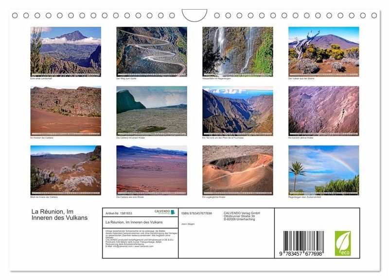 QUALITÄT - Hochwertiger Fotokalender mit 12 wunderschönen Motiven auf lichtbeständigem Bilderdruckpapier, robuste Spiralbindung mit Aufhängebügel.NACHHALTIG - deutliche Abfallreduzierung durch bedarfsgerechte Einzelstückfertigung, umweltfreundliches FSC-zertifiziertes Papier, Produktion in Deutschland, klimabewusste Logistik.PERFEKTES GESCHENK - Kalender für Freunde und Familie, für Kinder und Erwachsene, jung und alt, zu Weihnachten, Geburtstag oder zwischendurch.VIELFALT - Bildkalender in verschiedenen Formaten, z.B. DIN A5, DIN A4, DIN A3 sowie DIN A2. Ob Naturmotiv, Gemälde oder Fotos, ideal für ein persönliches Wohlfühlambiente.Der Piton de la Fournaise auf La Réunion ist einer der aktivsten Vulkane der Erde von Autor(in): Joern Stegen