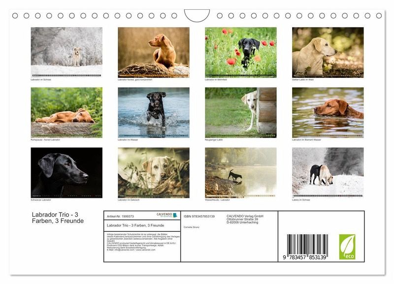 Wer Labradore liebt wird hier mit tollen Naturfotos dieser Rasse belohnt! So unterschiedlich wie die Fellfarbe, so unterschiedlich sind die 3 Freunde im Ausdruck. Jeden Monat ein ganz besonderes Foto.