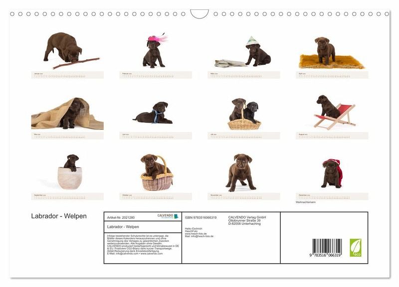 QUALITÄT - Hochwertiger Fotokalender mit 12 wunderschönen Motiven auf lichtbeständigem Bilderdruckpapier, robuste Spiralbindung mit Aufhängebügel.NACHHALTIG - deutliche Abfallreduzierung durch bedarfsgerechte Einzelstückfertigung, umweltfreundliches FSC-zertifiziertes Papier, Produktion in Deutschland, klimabewusste Logistik.PERFEKTES GESCHENK - Kalender für Freunde und Familie, für Kinder und Erwachsene, jung und alt, zu Weihnachten, Geburtstag oder zwischendurch.VIELFALT - Bildkalender in verschiedenen Formaten, z.B. DIN A5, DIN A4, DIN A3 sowie DIN A2. Ob Naturmotiv, Gemälde oder Fotos, ideal für ein persönliches Wohlfühlambiente.Wandkalender Labrador - Welpen von Autor(in): HeschFoto