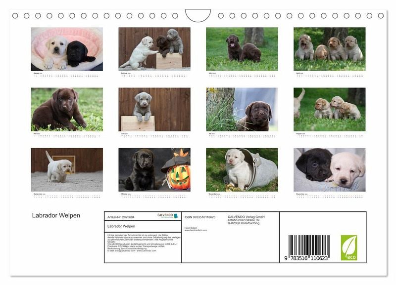 QUALITÄT - Hochwertiger Fotokalender mit 12 wunderschönen Motiven auf lichtbeständigem Bilderdruckpapier, robuste Spiralbindung mit Aufhängebügel.NACHHALTIG - deutliche Abfallreduzierung durch bedarfsgerechte Einzelstückfertigung, umweltfreundliches FSC-zertifiziertes Papier, Produktion in Deutschland, klimabewusste Logistik.PERFEKTES GESCHENK - Kalender für Freunde und Familie, für Kinder und Erwachsene, jung und alt, zu Weihnachten, Geburtstag oder zwischendurch.VIELFALT - Bildkalender in verschiedenen Formaten, z.B. DIN A5, DIN A4, DIN A3 sowie DIN A2. Ob Naturmotiv, Gemälde oder Fotos, ideal für ein persönliches Wohlfühlambiente.Ein ganzes Jahr voller Labrador Welpen von Autor(in): Heidi Bollich