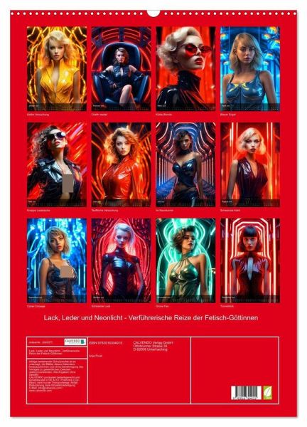 Tauchen Sie ein in eine faszinierende Welt der Verlockung und Eleganz mit unserem einzigartigen Kalender "Lack, Leder & Neonlicht - Verführerische Reize der Fetisch-Göttinnen". In zwölf atemberaubenden Monatsbildern präsentieren wir Ihnen die strahlende Schönheit und verführerische Ausstrahlung von wahren Göttinnen in Lack und Leder, umgeben von sinnlichem Neonlicht. Der Kalender ist eine visuelle KI-generierte Augenweide, und eine ästhetische Reise durch zwölf aufregende Monate.
