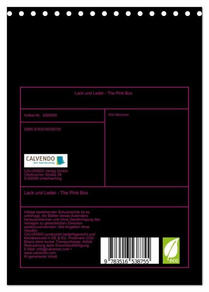 Tauchen Sie ein, in eine Welt voller Kontraste. Bildschöne Frauen in Lack und Leder, verführerisch in Szene gesetzt in einer knalligen Pink Box. Dieser Kalender vereint Erotik und Ästhetik, Dominanz und Eleganz. Jeder Monat ein neuer Höhepunkt, kraftvoll, sinnlich und unwiderstehlich.