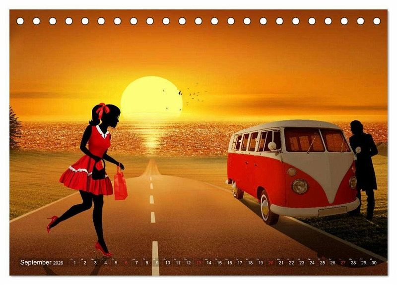 Frauen ganz romantisch im Retro Style, am Strand, auf der Straße mit Oldtimern, in romantischen Sonnenuntergang, ganz verliebt und sehnsuchtsvoll. Ein ganzes Jahr zum Träumen für Romantiker!