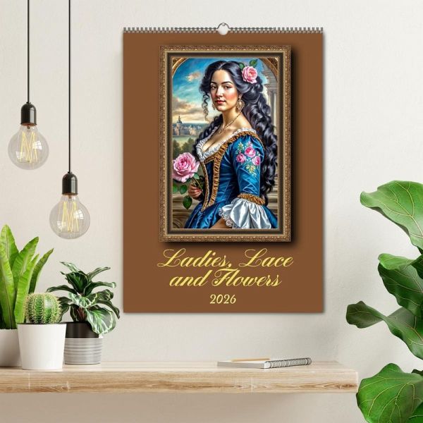 In this calendar, the monthly images reveal artfully crafted portraits of women resplendent in magnificent Baroque costumes-every detail designed with love and artificial intelligence. Each image perfectly captures the grace and style of this era, from the opulent floral arrangements to the intricately draped lace fabrics. Whether as a gift for art lovers, history enthusiasts, or simply for yourself, this picture calendar is a tribute to the beauty and sophistication of elegant women from bygone times. Bring a touch of noble elegance into your home with this calendar, and let yourself be enchanted by the timeless splendor of the Baroque.
