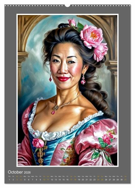 In this calendar, the monthly images reveal artfully crafted portraits of women resplendent in magnificent Baroque costumes-every detail designed with love and artificial intelligence. Each image perfectly captures the grace and style of this era, from the opulent floral arrangements to the intricately draped lace fabrics. Whether as a gift for art lovers, history enthusiasts, or simply for yourself, this picture calendar is a tribute to the beauty and sophistication of elegant women from bygone times. Bring a touch of noble elegance into your home with this calendar, and let yourself be…mehr