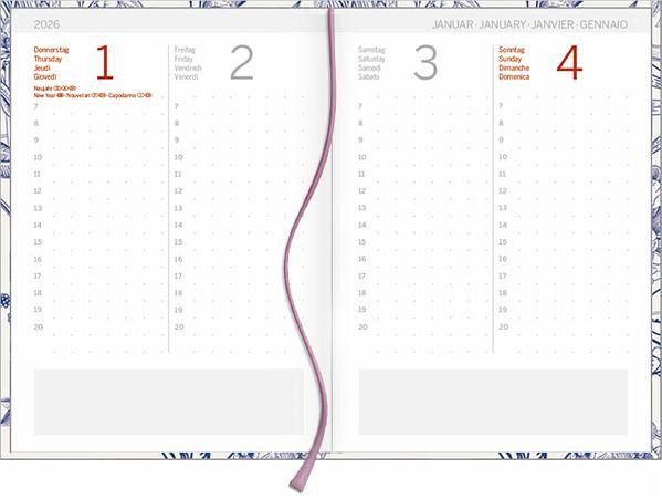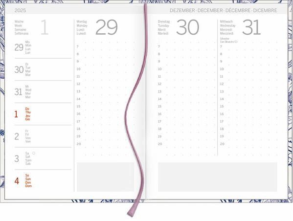 Taschenkalender im Format: 10,5 x 14,8 cm, 240 Seiten, umweltfreundliches FSC PapierPraktische Wochenübersicht: Jede Kalenderwoche übersichtlich auf 4 Seiten!Kalendarium auf D/E/F/I; Feiertage für Deutschland, Österreich und SchweizStabiler Einband in Leinen-OptikPraktisches Lesebändchen; Anzeige der Mondphasen