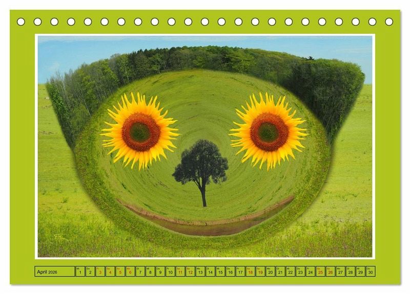 Mit einem Lächeln beginnt ein neuer Monat gleich viel freundlicher. Und was könnte besser zu lustigen Gesichtern passen, als malerische Landschaften, beispielsweise aus Schottland, Niedersachsen, der Ostsee oder dem Bodensee. Die Foto-Künstlerin Christine Bienert hat aus eigenen Fotos fantasievolle Landschaftsbilder geschaffen, die zum Zurück-Lächeln verführen.