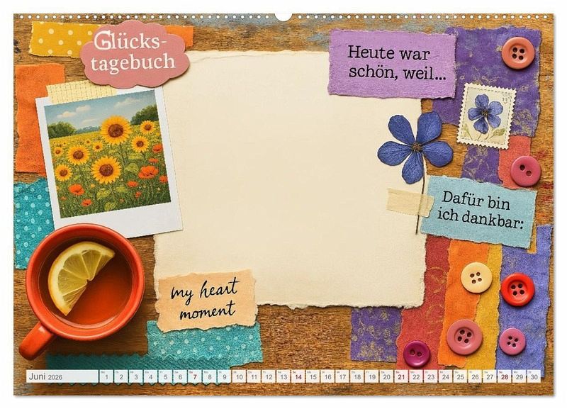 Ob zum Einkleben besonderer Erinnerungen oder zum Aufschreiben kleiner Glücksmomente. Dieser Kalender macht jeden Tag ein bisschen heller.