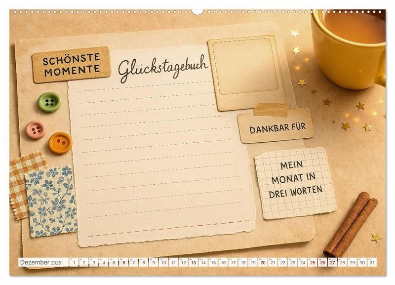 Dieser liebevoll gestaltete Kalender lädt dich dazu ein, deine schönsten Momente, Gedanken und Träume festzuhalten.