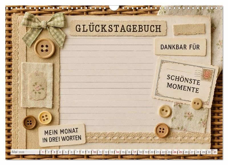 Dieser liebevoll gestaltete Kalender lädt dich dazu ein, deine schönsten Momente, Gedanken und Träume festzuhalten.