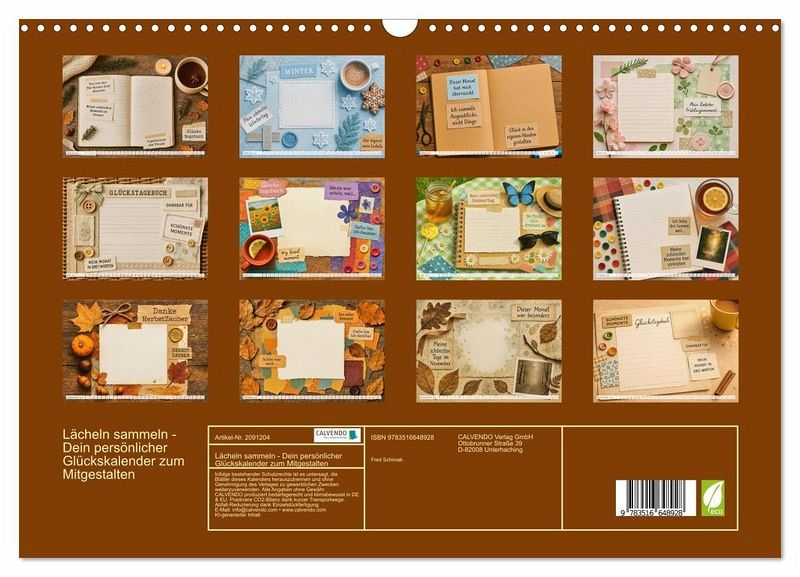 Dieser liebevoll gestaltete Kalender lädt dich dazu ein, deine schönsten Momente, Gedanken und Träume festzuhalten. Jedes Monatsblatt bietet dir viel Platz für eigene Notizen, Collagen, Fotos oder kleine Kunstwerke - dein persönliches Glückstagebuch entsteht dabei Monat für Monat. Die stimmungsvollen Hintergründe wurden mit Hilfe von künstlicher Intelligenz entworfen und sorgfältig ausgewählt, um dir Inspiration und kreativen Freiraum zu schenken. Ob zum Einkleben besonderer Erinnerungen oder zum Aufschreiben kleiner Glücksmomente. Dieser Kalender macht jeden Tag ein bisschen heller. Ein Jahr…mehr