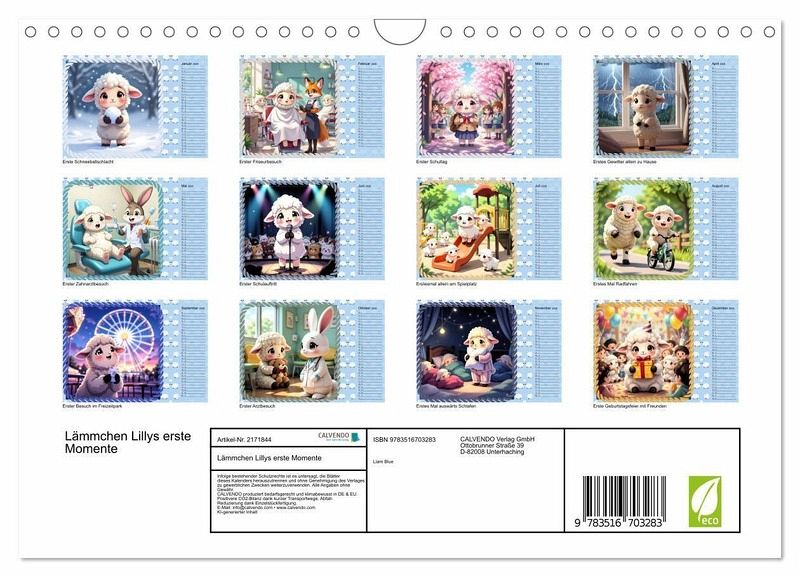 Entdecke mit "Lämmchen Lillys erste Momente" einen einzigartigen Kinderkalender, der kleine und große Schafskinder liebevoll durch das Jahr begleitet! Jeder Monat zeigt ein niedliches, von moderner KI generiertes Bild, das die aufregenden ersten Male von Lilly erlebbar macht - vom Fahrradfahren bis zur Schneeballschlacht. Mit viel Charme und Herz hilft dieser Kalender Kindern, ihre eigenen mutigen Schritte zu feiern. Ein ideales Geschenk für Familien, das Mut macht und für strahlende Kinderaugen sorgt!