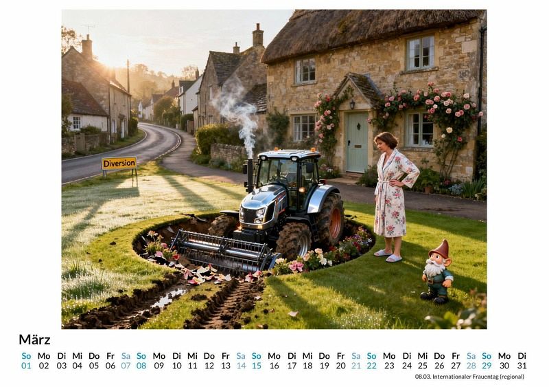 Das Landleben, eine Idylle aus Ruhe und Natur? Nicht immer. Der Kalender "Ländliche Karikaturen" zeigt mit einem Augenzwinkern, was wirklich hinter den Scheunentoren und auf den Dorffesten passiert. Jeder Monat enthüllt eine Szene, die den ländlichen Alltag auf die Schippe nimmt und beweist, dass es auf dem Dorf alles andere als langweilig zugeht. Dieser Kalender ist eine gute Wahl für: * Dorfbewohner mit einem gesunden Sinn für Selbstironie. * Städter, die schon immer wissen wollten, was auf dem Land wirklich los ist. * Alle, die Freude an satirischen Cartoons und pointiertem Humor haben. Jeder Monat präsentiert eine neue, überspitzte Situation. Von der Generalprobe des Posaunenchors bis zum Wettstreit um den größten Kürbis. Die Motive, erdacht von einer kreativen Logik, fangen die Eigenheiten des dörflichen Zusammenlebens ein und verwandeln sie in komische Momentaufnahmen. Die Bilder sind keine gemalten Kunstwerke, sondern digital erstellte Illustrationen, die den karikaturistischen Stil unterstreichen. Beim Kauf dieses Kalenders kann man Folgendes erwarten: * Zwölf einzigartige Monatsmotive voller Witz und Charme. * Ein Kalendarium, das Platz für eigene Notizen bietet. * Einen humorvollen Begleiter durch das ganze Jahr. Der Kalender "Ländliche Karikaturen" ist eine humorvolle Hommage an das Leben abseits der Großstadt und bringt Monat für Monat ein Schmunzeln in den Alltag. Eine Vorschau auf die einzelnen Monatsmotive gibt einen guten Einblick in den komischen Kosmos des Dorflebens.