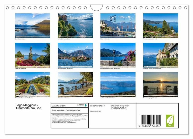 QUALITÄT - Hochwertiger Fotokalender mit 12 wunderschönen Motiven auf lichtbeständigem Bilderdruckpapier, robuste Spiralbindung mit Aufhängebügel.NACHHALTIG - deutliche Abfallreduzierung durch bedarfsgerechte Einzelstückfertigung, umweltfreundliches FSC-zertifiziertes Papier, Produktion in Deutschland, klimabewusste Logistik.PERFEKTES GESCHENK - Kalender für Freunde und Familie, für Kinder und Erwachsene, jung und alt, zu Weihnachten, Geburtstag oder zwischendurch.VIELFALT - Bildkalender in verschiedenen Formaten, z.B. DIN A5, DIN A4, DIN A3 sowie DIN A2. Ob Naturmotiv, Gemälde oder Fotos, ideal für ein persönliches Wohlfühlambiente.Am Lago Maggiore verschmelzen Sonne, See und Berge zu einem Paradies aus italienischer Leichtigkeit und zeitloser Eleganz von Autor(in): Elisabeth Schittenhelm