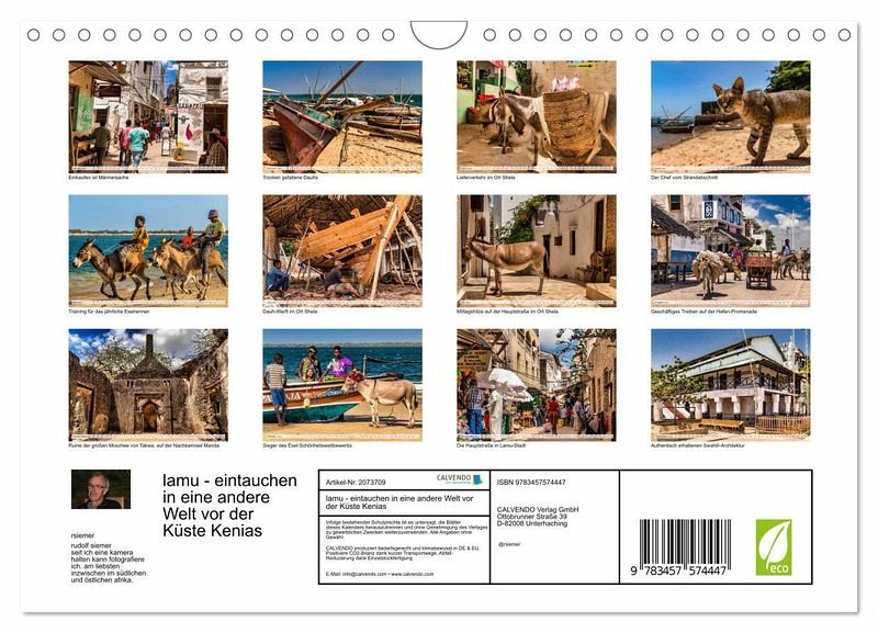 QUALITÄT - Hochwertiger Fotokalender mit 12 wunderschönen Motiven auf lichtbeständigem Bilderdruckpapier, robuste Spiralbindung mit Aufhängebügel.NACHHALTIG - deutliche Abfallreduzierung durch bedarfsgerechte Einzelstückfertigung, umweltfreundliches FSC-zertifiziertes Papier, Produktion in Deutschland, klimabewusste Logistik.PERFEKTES GESCHENK - Kalender für Freunde und Familie, für Kinder und Erwachsene, jung und alt, zu Weihnachten, Geburtstag oder zwischendurch.VIELFALT - Bildkalender in verschiedenen Formaten, z.B. DIN A5, DIN A4, DIN A3 sowie DIN A2. Ob Naturmotiv, Gemälde oder Fotos, ideal für ein persönliches Wohlfühlambiente.Der Eindruck, eine andere Welt zu betreten ist auf Lamu unmittelbar. von Autor(in): rsiemer