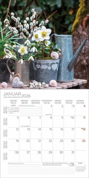 Wandkalender im Format: 30 x 30 cm; offenes Format: 30 x 60 cm; umweltfreundliches FSC PapierJede Kalenderseite mit großem Bild und viel Platz im Kalendarium für Notizen und TermineMehrsprachiges Kalendarium: DE/GB/FR/IT/ES mit Feiertagen für D/A/CH/GB/FR/IT/ESRegionale Ferienzeiten für DE/A/CHMonatsübersicht für den jeweiligen Vor- und Nachmonat; Jahresübersicht