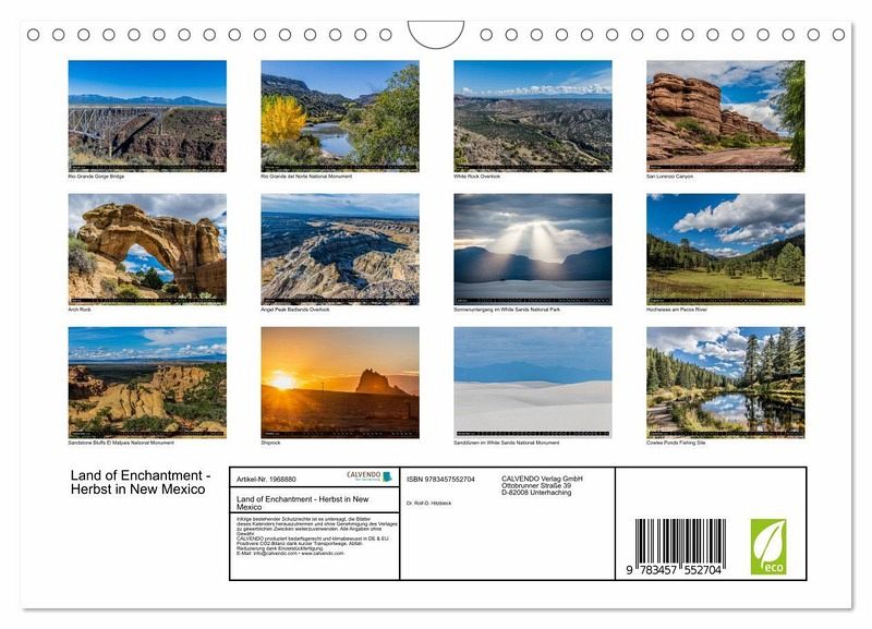 QUALITÄT - Hochwertiger Fotokalender mit 12 wunderschönen Motiven auf lichtbeständigem Bilderdruckpapier, robuste Spiralbindung mit Aufhängebügel.NACHHALTIG - deutliche Abfallreduzierung durch bedarfsgerechte Einzelstückfertigung, umweltfreundliches FSC-zertifiziertes Papier, Produktion in Deutschland, klimabewusste Logistik.PERFEKTES GESCHENK - Kalender für Freunde und Familie, für Kinder und Erwachsene, jung und alt, zu Weihnachten, Geburtstag oder zwischendurch.VIELFALT - Bildkalender in verschiedenen Formaten, z.B. DIN A5, DIN A4, DIN A3 sowie DINA2. Ob Naturmotiv, Gemälde oder Fotos, ideal für ein persönliches Wohlfühlambiente.New Mexico ist ein wunderschöner Staat im Südwesten der USA von Autor(in): Rolf Hitzbleck