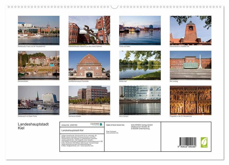 PREMIUM-LINIE - Brillanter Fotokalender mit 12 wunderschönen Motiven, Kunstdruck in Hochglanz in Museumsqualität.QUALITÄT - edle Materialien, stabile Rückwand mit 2 innovativen Einstecktaschen für eine optimale Präsentation an der Wand.NACHHALTIG - deutliche Abfallreduzierung durch bedarfsgerechte Einzelstückfertigung, umweltfreundliches FSC-zertifiziertes Papier, Produktion in Deutschland, klimabewusste Logistik.PERFEKTES GESCHENK - Kalender für Freunde und Familie, für Kinder und Erwachsene, jung und alt, zu Weihnachten, Geburtstag oder zwischendurch.Die sehenswerte Hauptstadt Schleswig-Holsteins in einem Kalender vom Reisefotografen Peter Schickert. von Autor(in): Peter Schickert