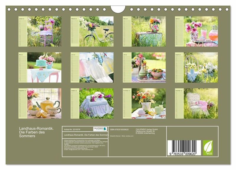 Bezaubernde Motive in zarten Pastellfarben bringen die Farben des Sommers und nostalgische Landhaus-Romantik in jedes Heim. Dieser Planer zeigt charmante Stillleben die wirklich Freude machen.