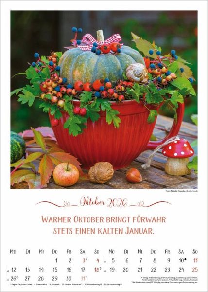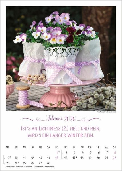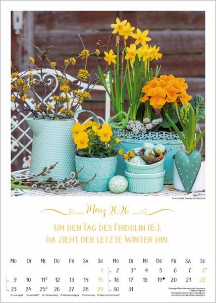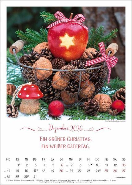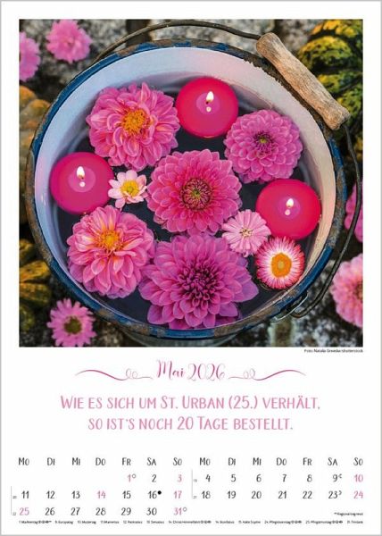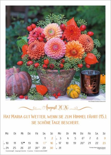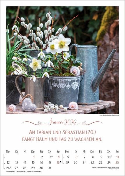 Pro Monat eine schöne gestaltete Bauernregel Kalendarium auf Deutsch; Feiertage für Deutschland, Österreich und der Schweiz Hervorragende Druckqualität bis ins Detail FSC zertifiziertes Papier aus verantwortungsvollen Quellen