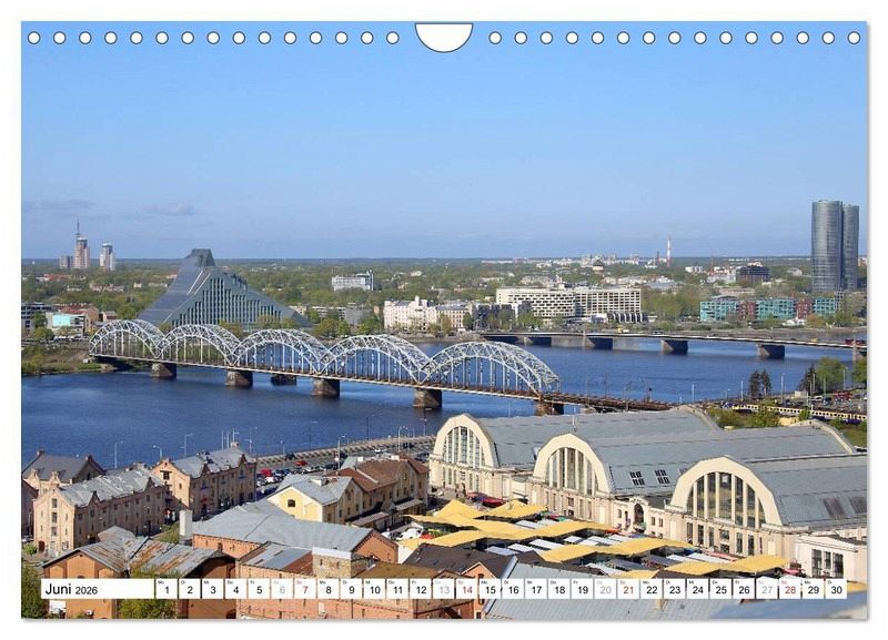 Juni: Riga: Panorama mit Markthallen, Eiserner Brücke und Nationalbibliothek