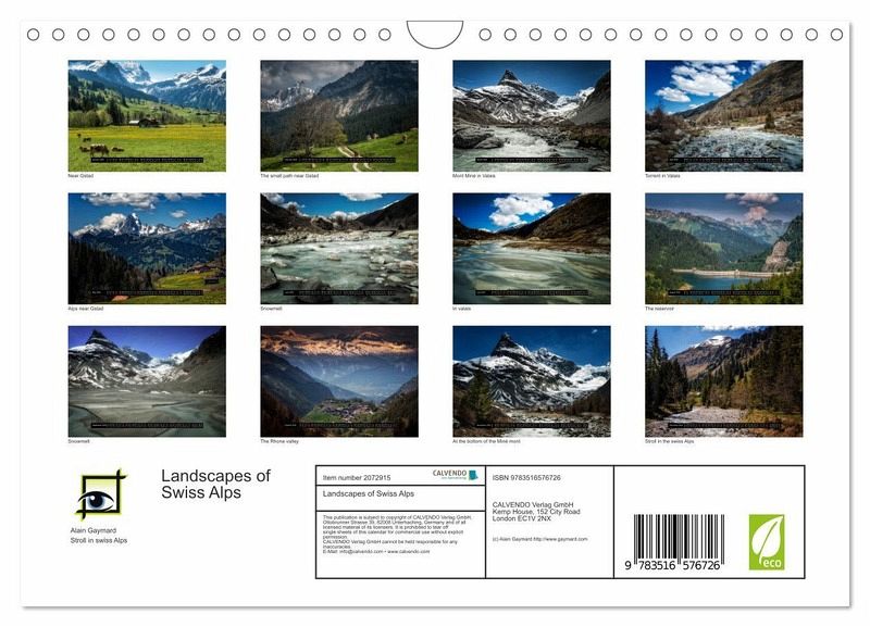 QUALITY - High-quality photo calendar with 12 beautiful images on light-resistant paper, robust spiral binding with hanger.SUSTAINABLE - Significant waste reduction due to print-on-demand production, environmentally friendly FSC-certified paper, produced in the UK, climate-conscious logistical processes.PERFECT GIFT - calendars for friends and family, for children, all ages and all occasions, from Christmas to birthdays and everything in between.LOTS OF CHOICE - Wall calendars in different sizes (DIN A4 and DIN A3), for any topic and personal taste, featuring photography, painting and illustrations.Snowmelt and spring in Swiss Alps, author: Alain Gaymard