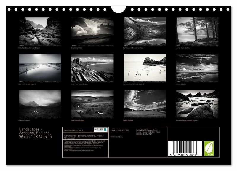 QUALITY - High-quality photo calendar with 12 beautiful images on light-resistant paper, robust spiral binding with hanger.SUSTAINABLE - Significant waste reduction due to print-on-demand production, environmentally friendly FSC-certified paper, produced in the UK, climate-conscious logistical processes.PERFECT GIFT - calendars for friends and family, for children, all ages and all occasions, from Christmas to birthdays and everything in between.LOTS OF CHOICE - Wall calendars in different sizes (DIN A4 and DIN A3), for any topic and personal taste, featuring photography, painting and illustrations.Atmospheric Black and White Landscape Photographs of Scotland, England and Wales., author: Dorit Fuhg