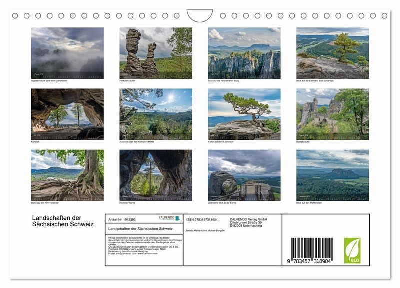 Tauchen Sie ein in die atemberaubenden Landschaften der Sächsischen Schweiz und lassen Sie sich von der Schönheit dieses einzigartigen Naturparadieses verzaubern. Die markanten Steinskulpturen sind wahre Wunder der Natur. Holen Sie sich die Schönheit der Sächsischen Schweiz in ihr zu Hause und lassen Sie sich Monat für Monat von der natürlichen Pracht dieser einzigartigen Region begleiten.