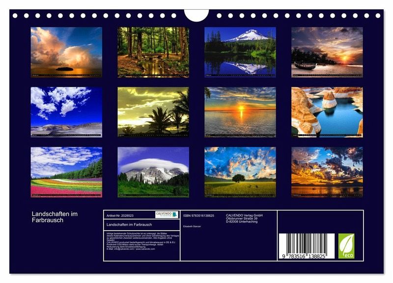 QUALITÄT - Hochwertiger Fotokalender mit 12 wunderschönen Motiven auf lichtbeständigem Bilderdruckpapier, robuste Spiralbindung mit Aufhängebügel.NACHHALTIG - deutliche Abfallreduzierung durch bedarfsgerechte Einzelstückfertigung, umweltfreundliches FSC-zertifiziertes Papier, Produktion in Deutschland, klimabewusste Logistik.PERFEKTES GESCHENK - Kalender für Freunde und Familie, für Kinder und Erwachsene, jung und alt, zu Weihnachten, Geburtstag oder zwischendurch.VIELFALT - Bildkalender in verschiedenen Formaten, z.B. DIN A5, DIN A4, DIN A3 sowie DIN A2. Ob Naturmotiv, Gemälde oder Fotos, ideal für ein persönliches Wohlfühlambiente.Natur und Landschaften in kräftigen Farben von Autor(in): Elisabeth Stanzer