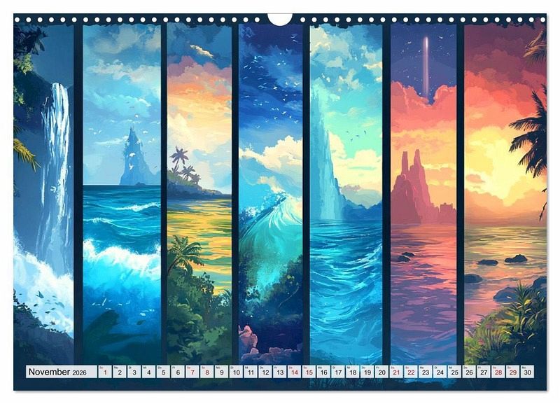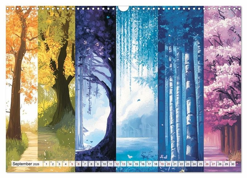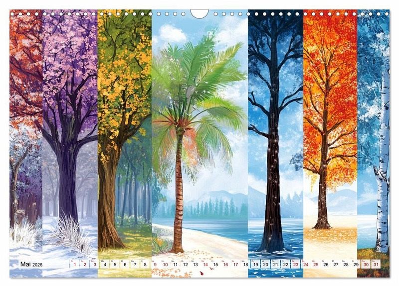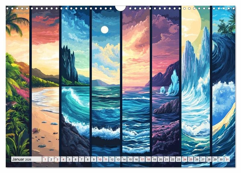 In jedem Monat entfaltet sich die Natur in kunstvoll angeordneten Streifen und Vierecken - komponiert aus KI-generierten Landschaftsbildern. Die künstliche Intelligenz erschafft detailreiche Szenen, die in Fragmenten eine ganz eigene Ästhetik entfalten. Eine faszinierende Mischung aus digitaler Kreativität und natürlicher Schönheit - für alle, die das Besondere suchen.