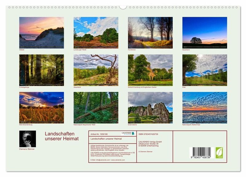 PREMIUM-LINIE - Brillanter Fotokalender mit 12 wunderschönen Motiven, Kunstdruck in Hochglanz in Museumsqualität.QUALITÄT - edle Materialien, stabile Rückwand mit 2 innovativen Einstecktaschen für eine optimale Präsentation an der Wand.NACHHALTIG - deutliche Abfallreduzierung durch bedarfsgerechte Einzelstückfertigung, umweltfreundliches FSC-zertifiziertes Papier, Produktion in Deutschland, klimabewusste Logistik.PERFEKTES GESCHENK - Kalender für Freunde und Familie, für Kinder und Erwachsene, jung und alt, zu Weihnachten, Geburtstag oder zwischendurch.Deutsche Landschaften in HD von Autor(in): Clemens Stenner