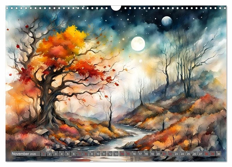 Entdecken Sie die Schönheit der Jahreszeiten mit unserem atemberaubenden Kalender. Tauchen Sie ein in den zauberhaften Frühling, spüren Sie die angenehme Kühle des Herbstes, Sommer Wärme und die Stille des Winters. Erfreuen Sie sich an den schillernden Farben und die einzigartige Atmosphäre jeder Jahreszeit. Dieser Kalender verleiht Ihren Raumen eine magische Naturatmosphäre.