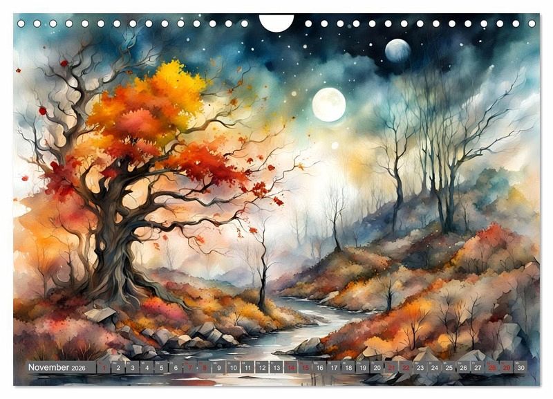 Entdecken Sie die Schönheit der Jahreszeiten mit unserem atemberaubenden Kalender. Tauchen Sie ein in den zauberhaften Frühling, spüren Sie die angenehme Kühle des Herbstes, Sommer Wärme und die Stille des Winters. Erfreuen Sie sich an den schillernden Farben und die einzigartige Atmosphäre jeder Jahreszeit. Dieser Kalender verleiht Ihren Raumen eine magische Naturatmosphäre.