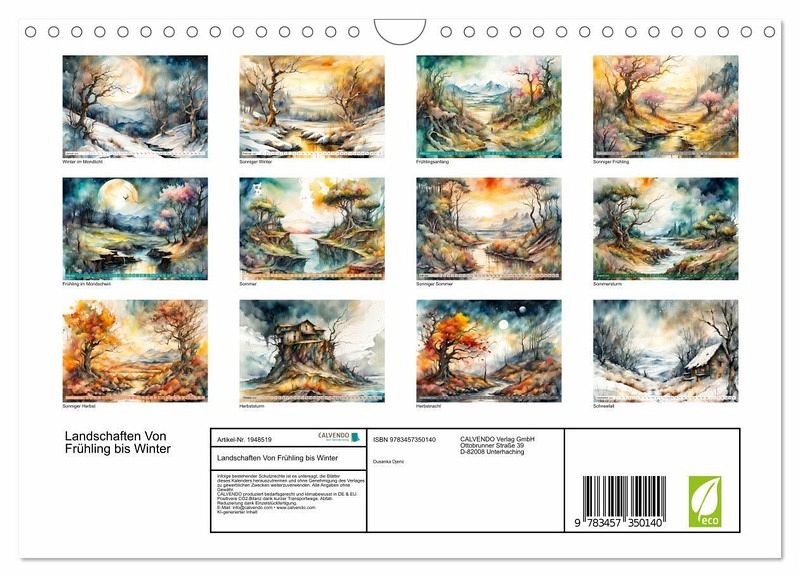 QUALITÄT - Hochwertiger Fotokalender mit 12 wunderschönen Motiven auf lichtbeständigem Bilderdruckpapier, robuste Spiralbindung mit Aufhängebügel.NACHHALTIG - deutliche Abfallreduzierung durch bedarfsgerechte Einzelstückfertigung, umweltfreundliches FSC-zertifiziertes Papier, Produktion in Deutschland, klimabewusste Logistik.PERFEKTES GESCHENK - Kalender für Freunde und Familie, für Kinder und Erwachsene, jung und alt, zu Weihnachten, Geburtstag oder zwischendurch.VIELFALT - Bildkalender in verschiedenen Formaten, z.B. DIN A5, DIN A4, DIN A3 sowie DIN A2. Ob Naturmotiv, Gemälde oder Fotos, ideal fürein persönliches Wohlfühlambiente.Zauberhaft Landschaften aus Vierjahreszeiten mit KI generiert. von Autor(in): Dusanka Djeric