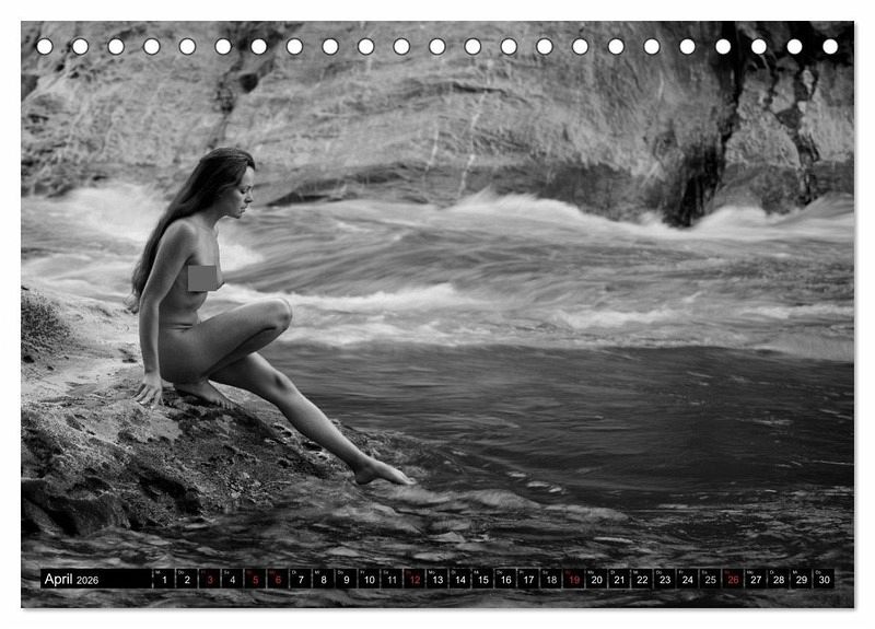 Klassischen Schwarzweiss-Aktbilder zeigen die Schönheit des weiblichen Körpers in Kombination mit Wasser und Felsen. Die Bilder wurden mit verschiedenen Fotomodellen im Tessin (Südschweiz) in traumhaften Naturkulissen aufgenommen