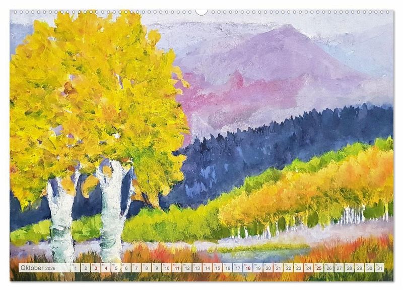Landschaftsmalerei bildet Ausschnitte von Natur- oder Kulturlandschaften ab. In diesem Kalender präsentiert die Künstlerin vielseitige Motive von den Bergen bis hin zum Meer, die im bunten Farbenkleid der jeweiligen Jahreszeit umgesetzt wurden. Jeder Monat ist ein wahrer Blickfang.