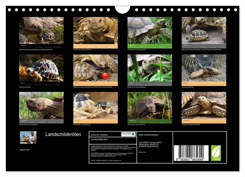 QUALITÄT - Hochwertiger Fotokalender mit 12 wunderschönen Motiven auf lichtbeständigem Bilderdruckpapier, robuste Spiralbindung mit Aufhängebügel.NACHHALTIG - deutliche Abfallreduzierung durch bedarfsgerechte Einzelstückfertigung, umweltfreundliches FSC-zertifiziertes Papier, Produktion in Deutschland, klimabewusste Logistik.PERFEKTES GESCHENK - Kalender für Freunde und Familie, für Kinder und Erwachsene, jung und alt, zu Weihnachten, Geburtstag oder zwischendurch.VIELFALT - Bildkalender in verschiedenen Formaten, z.B. DIN A5, DIN A4, DIN A3 sowie DIN A2. Ob Naturmotiv, Gemälde oder Fotos, ideal für ein persönliches Wohlfühlambiente.Verschiedene Arten von Landschildkröten von Autor(in): Marion Sixt