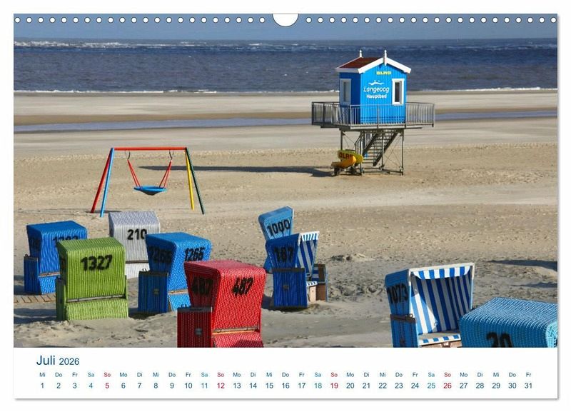 Langeoog gehört zu den Ostfriesischen Inseln. Die autofreie Familieninsel überzeugt durch Ruhe und Natur, weite Strände und hohe Dünen sowie Schönheit zwischen Wellen und Watt. Die schönsten Seiten der Insel hat die Hamburger Fotokünstlerin Steffani Lehmann für diesen Kalender eingefangen.