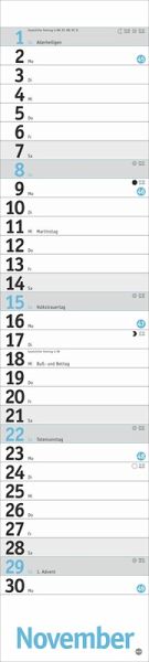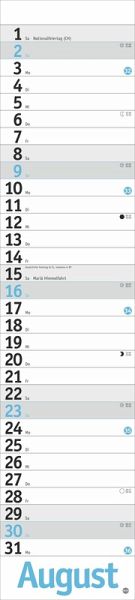 - Ein puristisches Planungsinstrument ohne störenden Schnickschnack: Wandplaner im Format 11 x 49 cm- Ob zu Hause oder im Büro: Der neutrale Planer mit Datumsschieber passt in jedes Zimmer - Übersichtlich und klar strukturiert: Der Monatskalender in zartem Hellblau sorgt dafür, dass Sie keinen Termin übersehen- Streifenkalender mit Schulferien, Feiertagen und farblich abgesetzten Wochenenden: Das funktionale Design lenkt den Blick ganz auf ihre Eintragungen- Für alle, die das Terminchaos schlicht und einfach im Griff haben wollen: Die neutralen Kalender von im Athesia Kalenderverlag