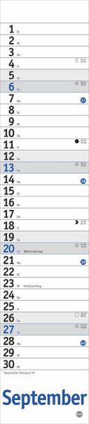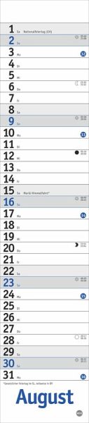 - Ein puristisches Planungsinstrument ohne störenden Schnickschnack: Schmaler Wandplaner im Format 7 x 33 cm- Ob zu Hause oder im Büro: Der neutrale Planer mit genug Platz für Eintragungen passt in jedes Zimmer - Übersichtlich und klar strukturiert: Der Monatskalender in Blau sorgt dafür, dass Sie keinen Termin übersehen- Streifenkalender mit Schulferien, Feiertagen und farblich abgesetzten Wochenenden: Das funktionale Design lenkt den Blick ganz auf Ihre Eintragungen- Für alle, die das Terminchaos schlicht und einfach im Griff haben wollen: Die neutralen Kalender von Heye im Athesia Kalenderverlag
