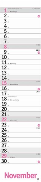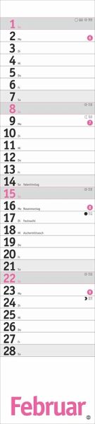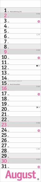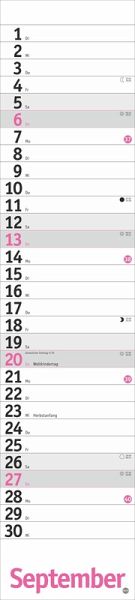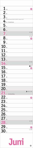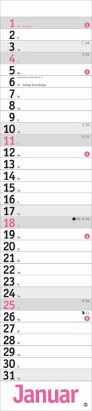 - Puristisches Planungsinstrument ohne störenden Schnickschnack: Wandplaner in knalliger Farbe- Ob zu Hause oder im Büro: Der neutrale Planer mit Datumsschieber und farblich abgesetzten Wochenenden passt an jede Wand- Übersichtlich und klar strukturiert: Der Monatskalender in kräftigem Pink sorgt dass Sie keinen Termin übersehen- Hier spielen Meetings und Geburtstage die Hauptrolle: Länglicher Kalender im funktionellen Design mit Schulferien und Feiertagen- Für alle, die das Terminchaos schlicht und einfach im Griff haben wollen: Die neutralen Kalender von Heye im Athesia Kalenderverlag