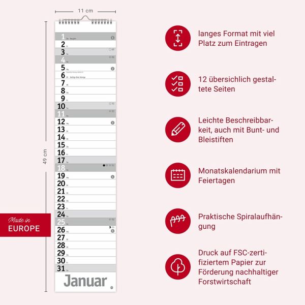 - Übersichtlich und klar strukturiert: Wandplaner mit viel Raum für Eintragungen- Puristisch schöne Organisationshilfe: Länglicher Kalender in edlem Silber für alle beruflichen und privaten Termine- Alle Termine im Blick: Wandkalender 2026 als perfekter Helfer für den Alltag- Terminplaner, der für Überblick sorgt mit Schulferien und farblich abgesetzten Wochenenden und Feiertagen- Für alle, die das Terminchaos schlicht und einfach im Griff haben wollen: Die neutralen Kalender von Heye im Athesia Kalenderverlag