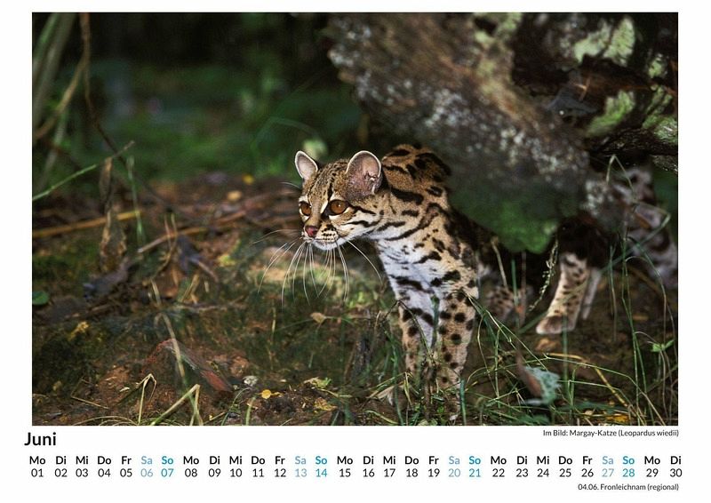 Entdecken Sie die faszinierende Welt der Langschwanzkatze mit unserem exklusiven Monats-Wandkalender! Diese elegante Kleinkatze, auch als Pardelkatze bekannt, verzaubert mit ihrem anmutigen Erscheinungsbild und ihrem charakteristischen langen Schwanz. Jedes der 12 liebevoll ausgewählten Motive fängt die Schönheit und das geheimnisvolle Wesen dieser seltenen Tiere perfekt ein. Gedruckt auf hochwertigem, lichtbeständigem Bilderdruckpapier, bringt dieser Kalender die Natur direkt in Ihr Zuhause. Nachhaltig in Deutschland auf FSC-zertifiziertem Papier produziert, ist er nicht nur ein optisches Highlight, sondern auch umweltfreundlich. Sichern Sie sich jetzt Ihr Exemplar und lassen Sie sich Monat für Monat inspirieren! Hochwertig Erleben Sie ein Jahr voller Eleganz mit unserem Premium-Fotokalender. Jedes der 12 Motive ist auf hochwertigem, lichtbeständigem Bilderdruckpapier gedruckt, um die Lebendigkeit jedes Bildes zu bewahren. Die robuste Spiralbindung gewährleistet Langlebigkeit und einfache Handhabung. Nachhaltig Unser Engagement für die Umwelt spiegelt sich in jedem Exemplar wider. Durch die Produktion auf Abruf reduzieren wir signifikant unseren Abfall. Wir verwenden ausschließlich umweltfreundliches, FSC-zertifiziertes Papier. Stolz gefertigt in Deutschland, achten wir bei unserer Logistik auf Klimaschutz, um unseren ökologischen Fußabdruck zu minimieren. Das ideale Geschenk Dieser Kalender ist das perfekte Präsent für jeden Anlass - ob Weihnachten, Geburtstage oder einfach als liebevolle Aufmerksamkeit zwischendurch. Geeignet für Freunde, Familie, Kinder und Erwachsene gleichermaßen, bereichert er jedes Zuhause mit seiner Vielfalt und Schönheit, unabhängig vom Alter der Beschenkten.